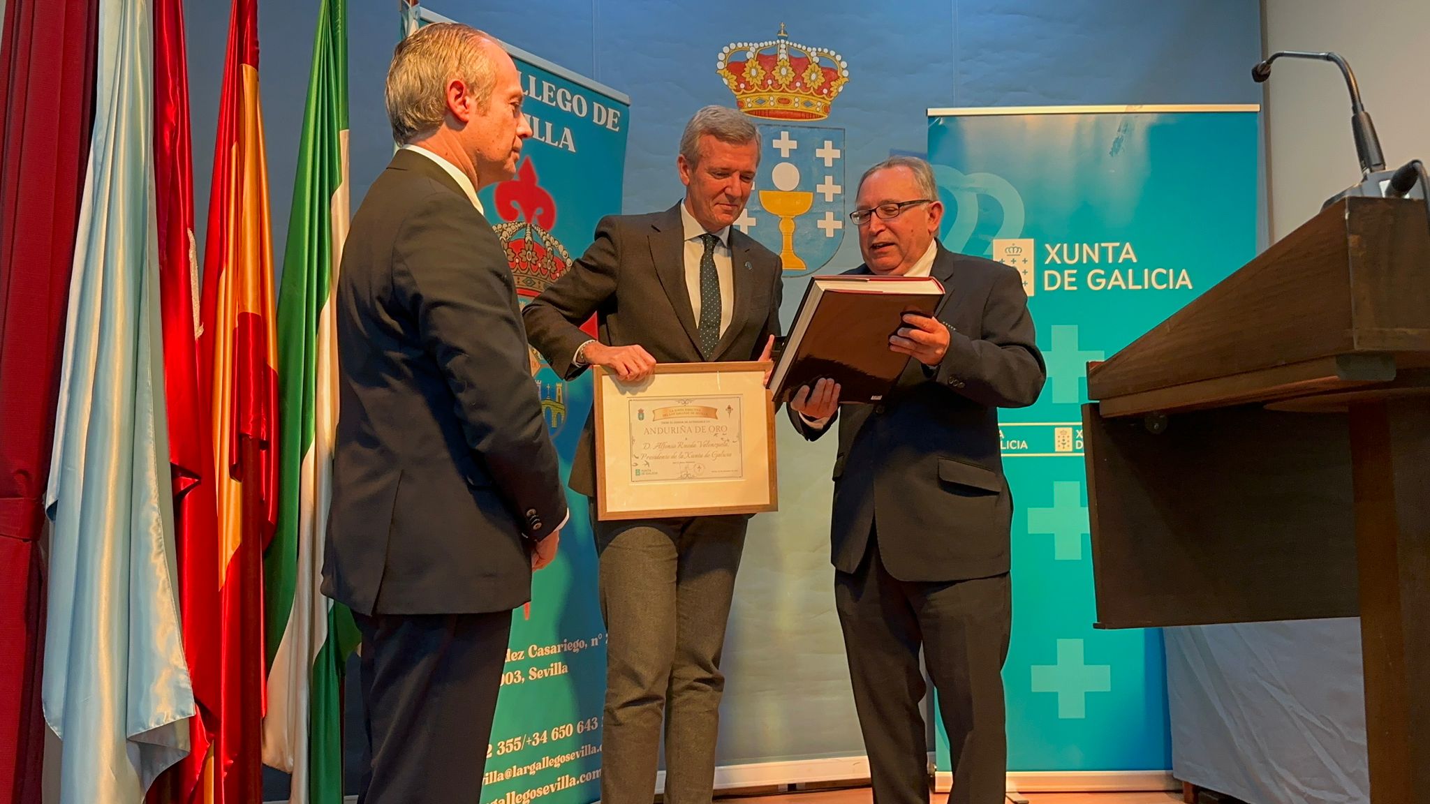 El Lar Gallego de Sevilla celebra su 69º Aniversario e impone la "Anduriña de Oro", máxima distinción de esta casa regional, al Presidente de la Xunta de Galicia, Alfonso Rueda